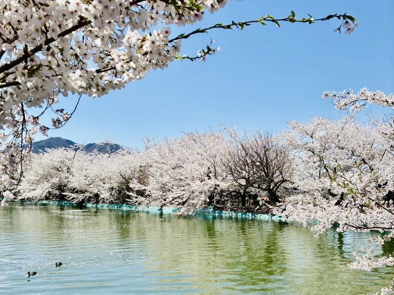 ふと園内の池に目をやると、水面に浮かぶ桜の花びらたちが。